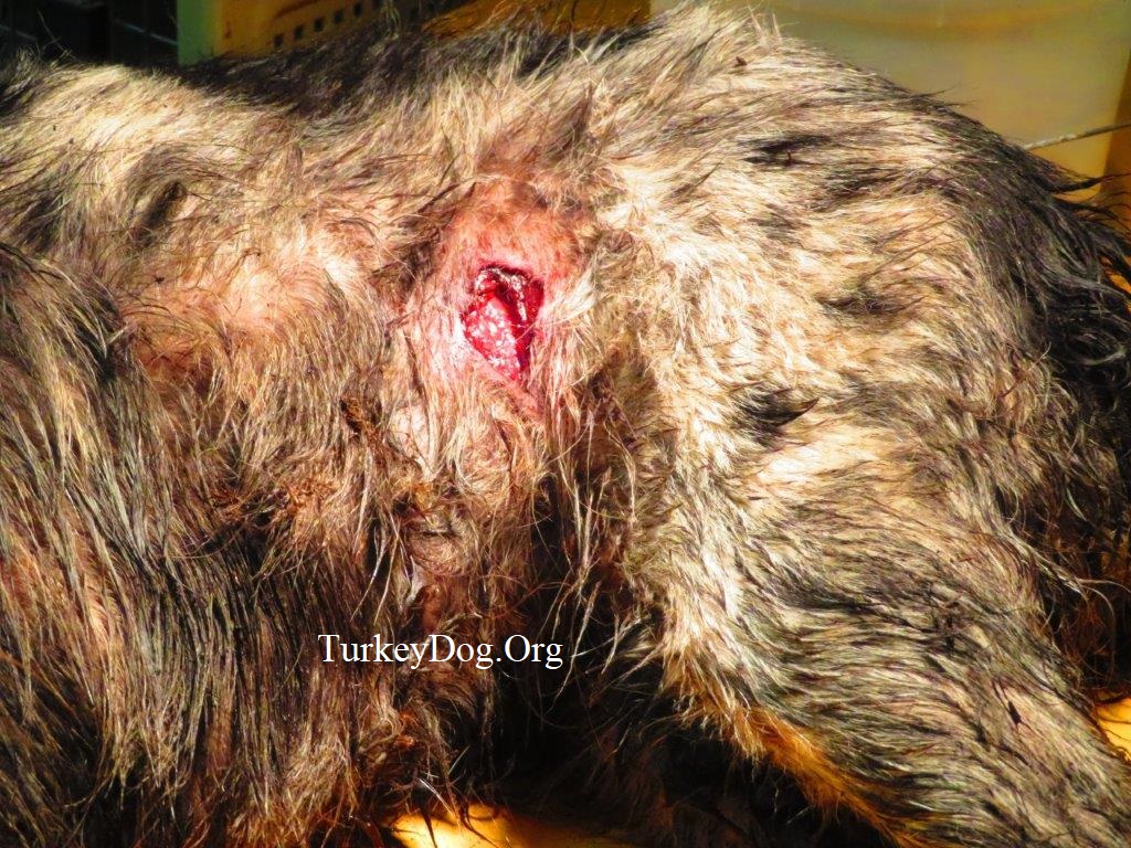 in the wound this morning. Vet pulled out 2 pieces
