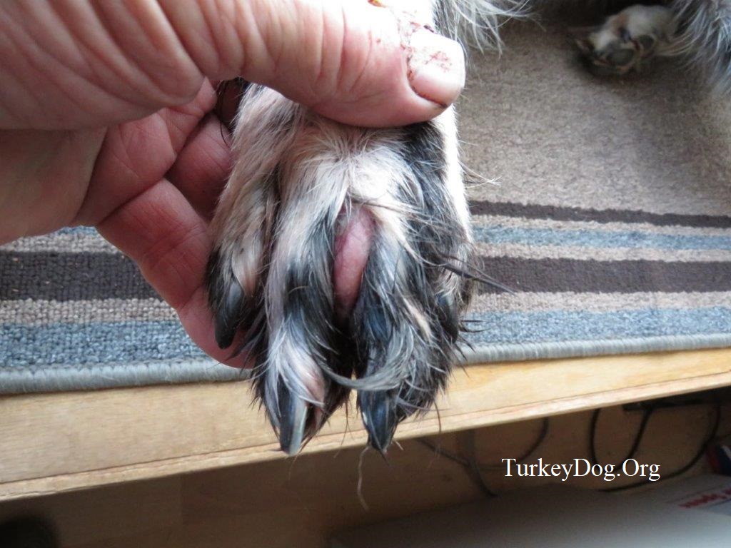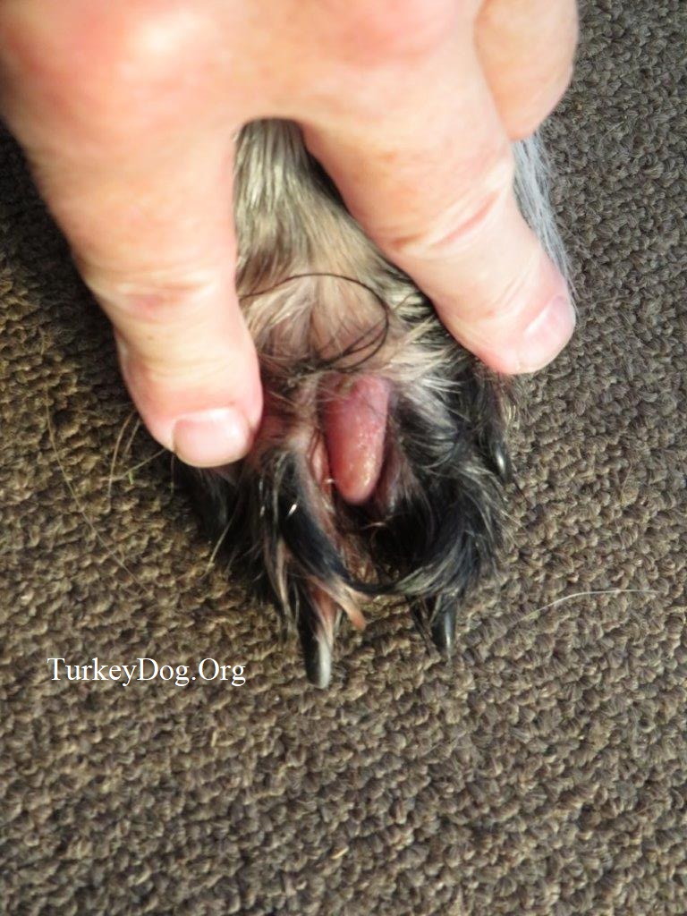 the paw, between the toes, swells up terrible. Put