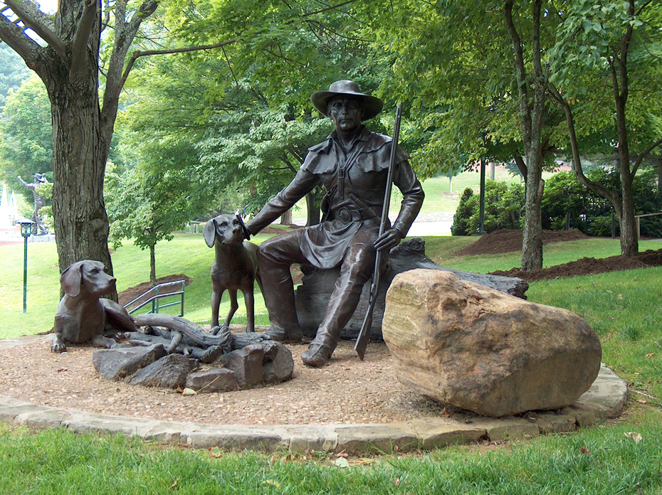 ![]() North Carolina's state dog is the Plott hound. It is also the hound most often claimed to be crossed with droppers to make turkey dogs. Learn more about Plotts at Appalachian History and the NPHA. Daniel Boone and his dogs at the Appalachian State University, Boone, NC. Photo Randell Jones → |