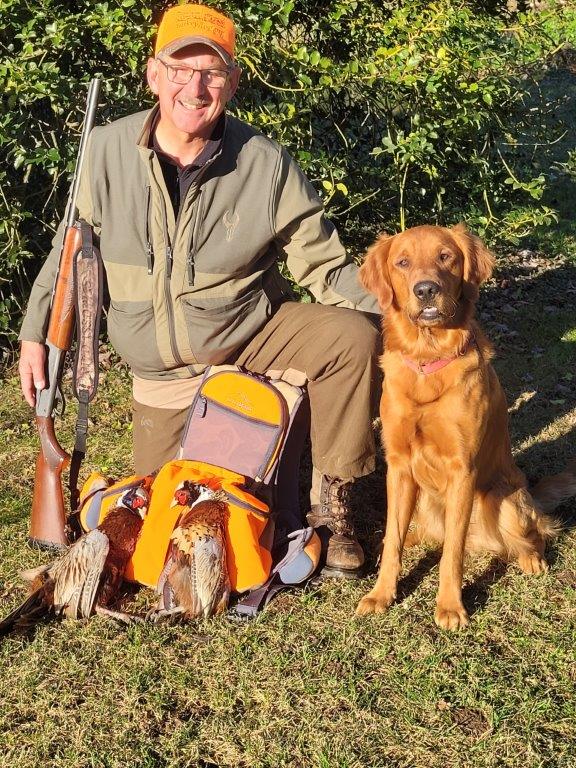 can't wait to get him around some birds.1/11/24 Remi is doing great. He loves to pheasant hunt. Our season here is basically over and we got 35 pheasants this past hunting season. In Pennsylvania the daily limit is 2, so we were out a good bit. For a 15 month old dog he is doing great. His improvement from the first day, Oct. 21st, has been incredible. With Remi's color, he almost dissappears in the fall leaves. The turkey population in the areas that I hunt are down and Remi has not had a chance to even see a flock. During this past summer and early fall we were out a a fair amount trying to find some turkeys for him to train on, to no avail. We will continue to try this winter and of course the summer time. Our last Golden had been into 8 or 9 flocks by 15 months. Hopefully the turkey population will improve. Nathan Beaston Shermans Dale PA 717-582-8204 1/11/24 |